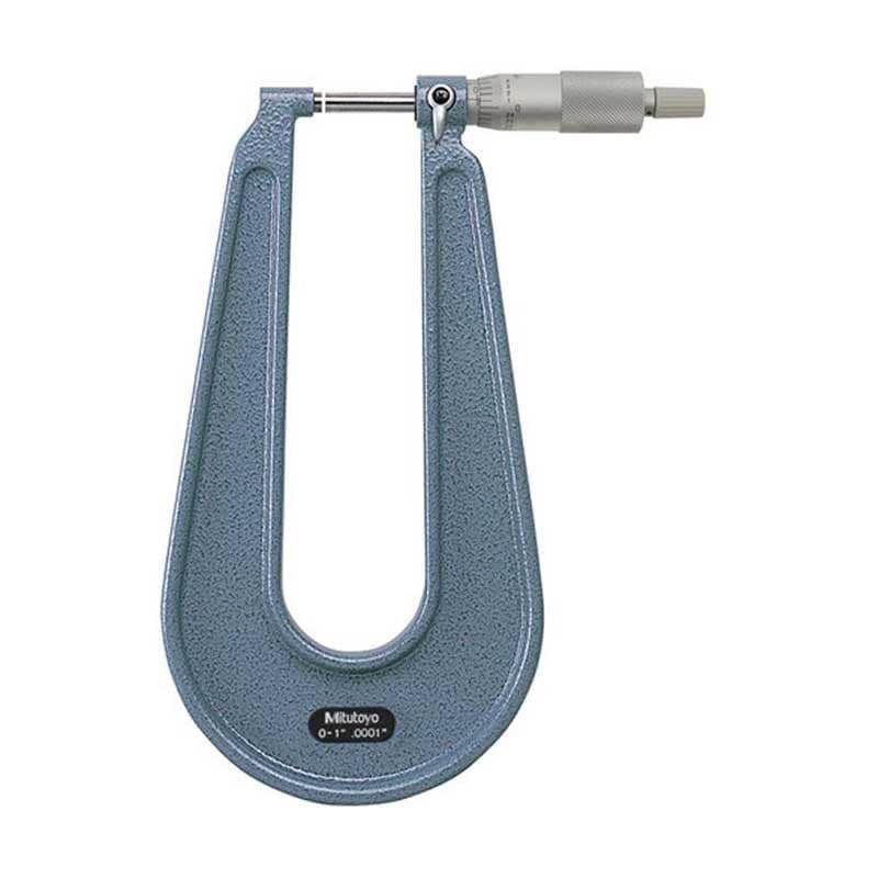 Mitutoyo 118-129 Mechanical Sheet Metal Micrometer has a measuring range of 0-254mm Features a Ratchet Stop for constant force, carbide tipped measuring faces These micrometers measure the thickness of sheet metal, paper, plastic and rubber parts Supplied in a fitted plastic case