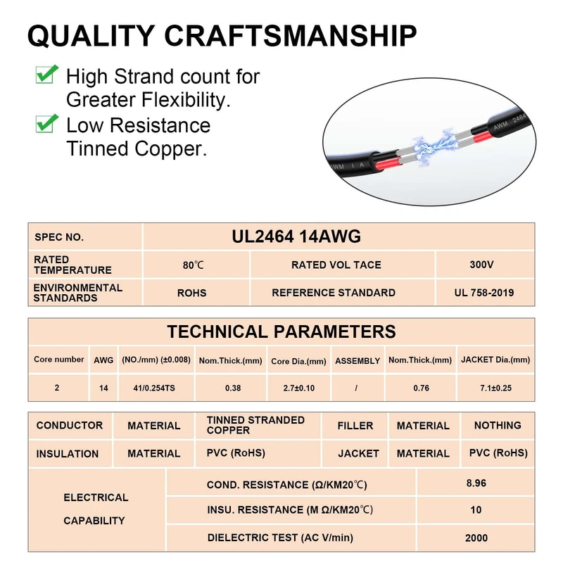 14 Gauge Wire 2 Conductor Electrical Wire 14AWG Electrical Wire Stranded PVC …