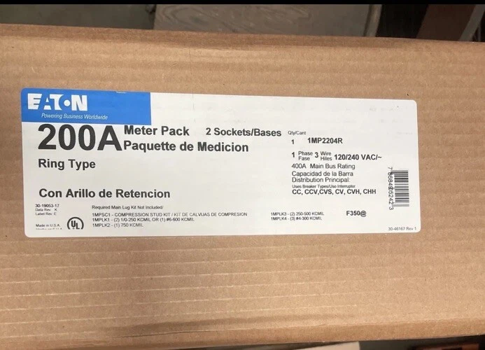 400 AMP Duplex Two Meter Socket Main Electrical Service Panel Pack Ring Type