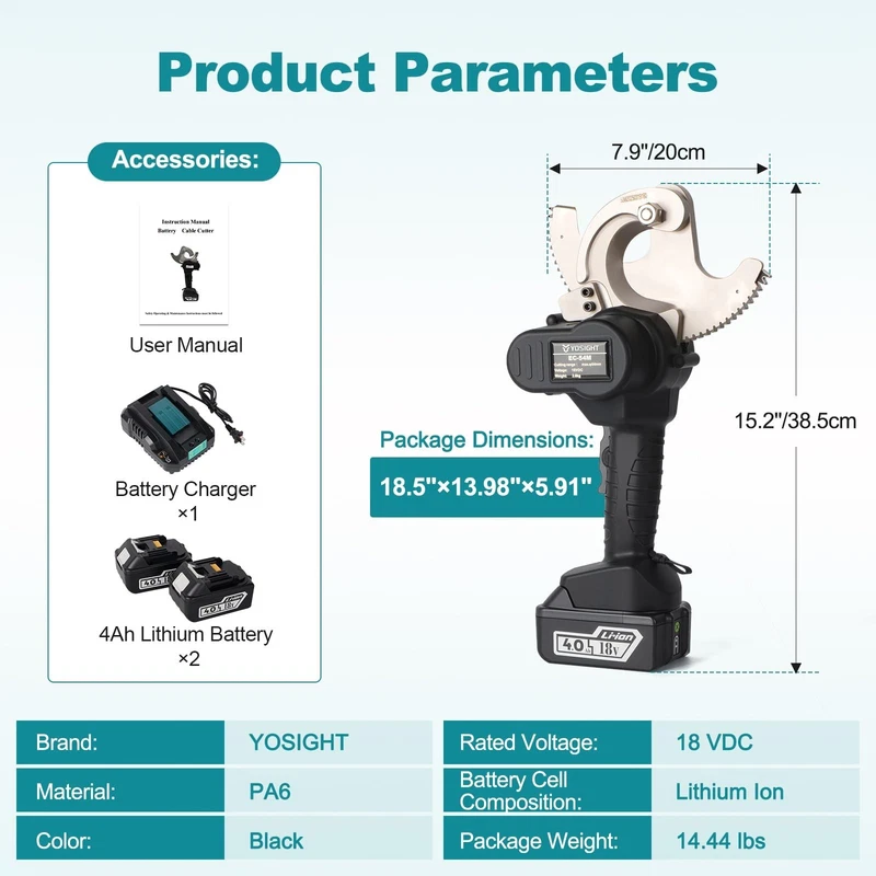 54mm Heavy Duty Cable Cutters Kit 18VDC Cordless Rechargeable Electrical ACS