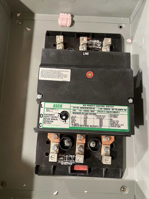 Asco 920310031C New 100 Amps 920 Series Lighting Contactor