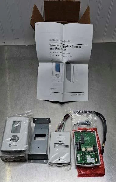 A wireless display sensor and receiver system designed for HVAC monitoring and control, providing real-time environmental data transmission and display without wired connections.