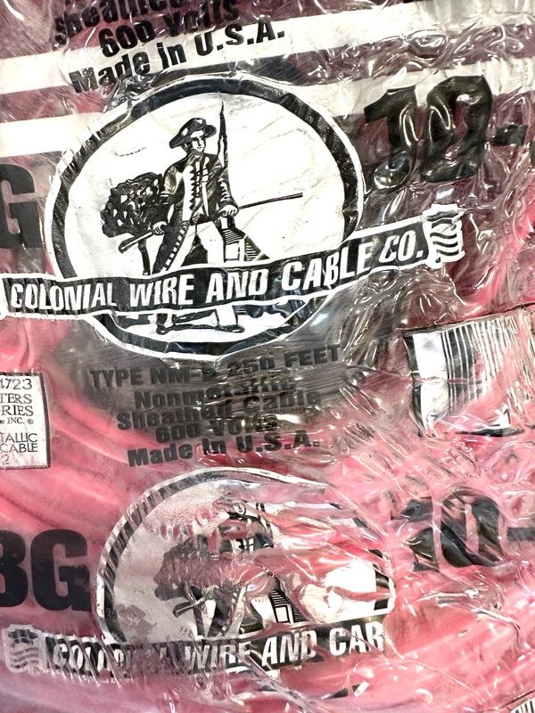 Colonial Wire & Cable Co 103 NM-B 250 FT Copper Electrical Cable-Romex -NEW
