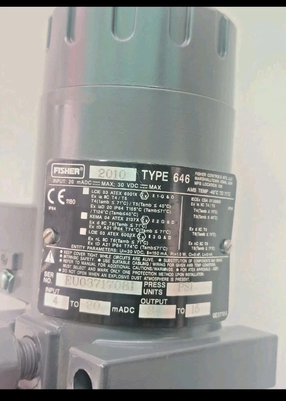 Fisher Controls Type 646 Electro Pneumatic Transducer Used