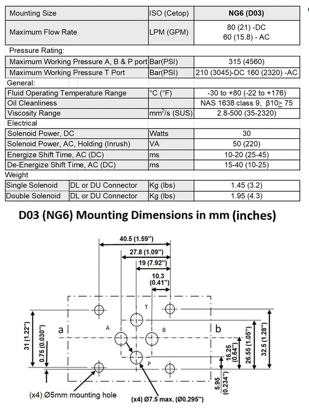 Hydraulic Electrical Solenoid Valve with manual lever D03 (NG6) 3 position