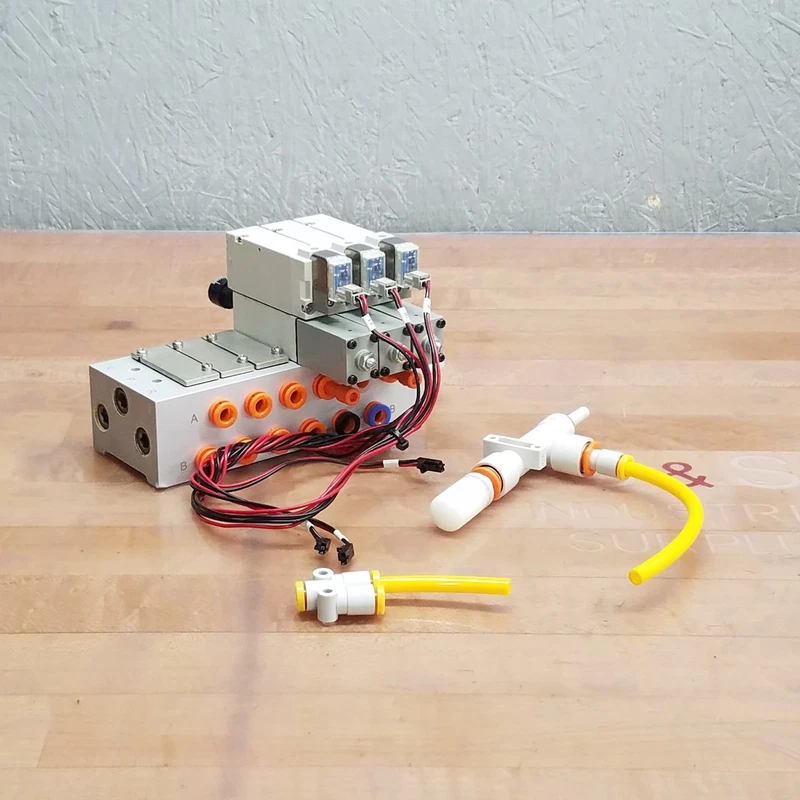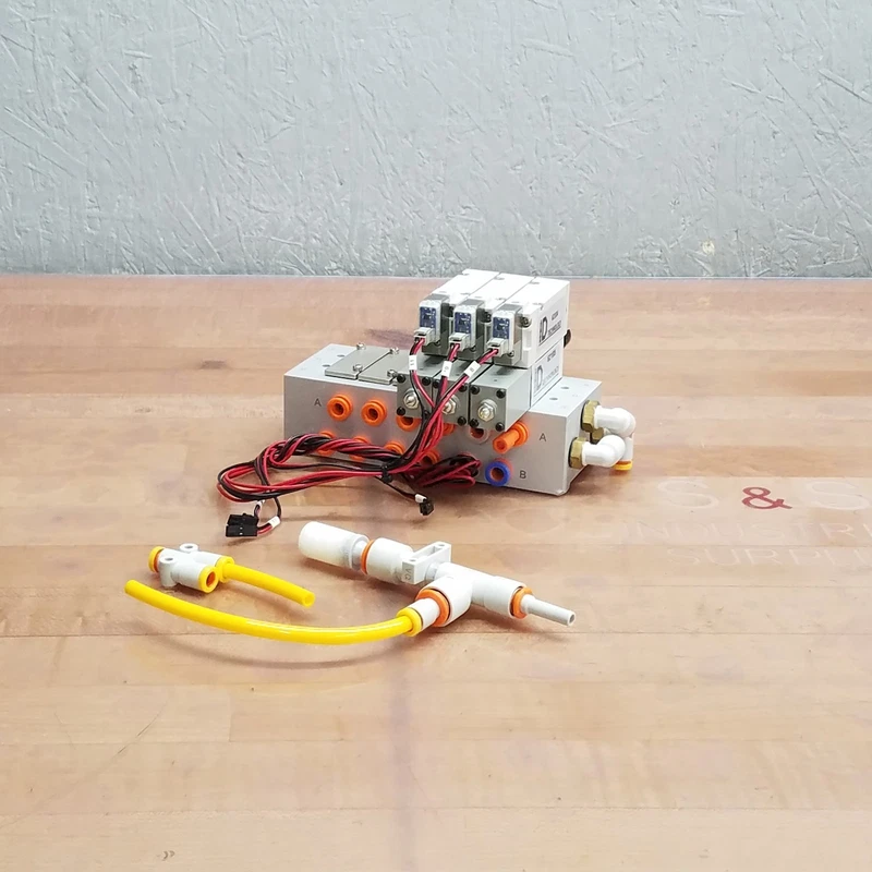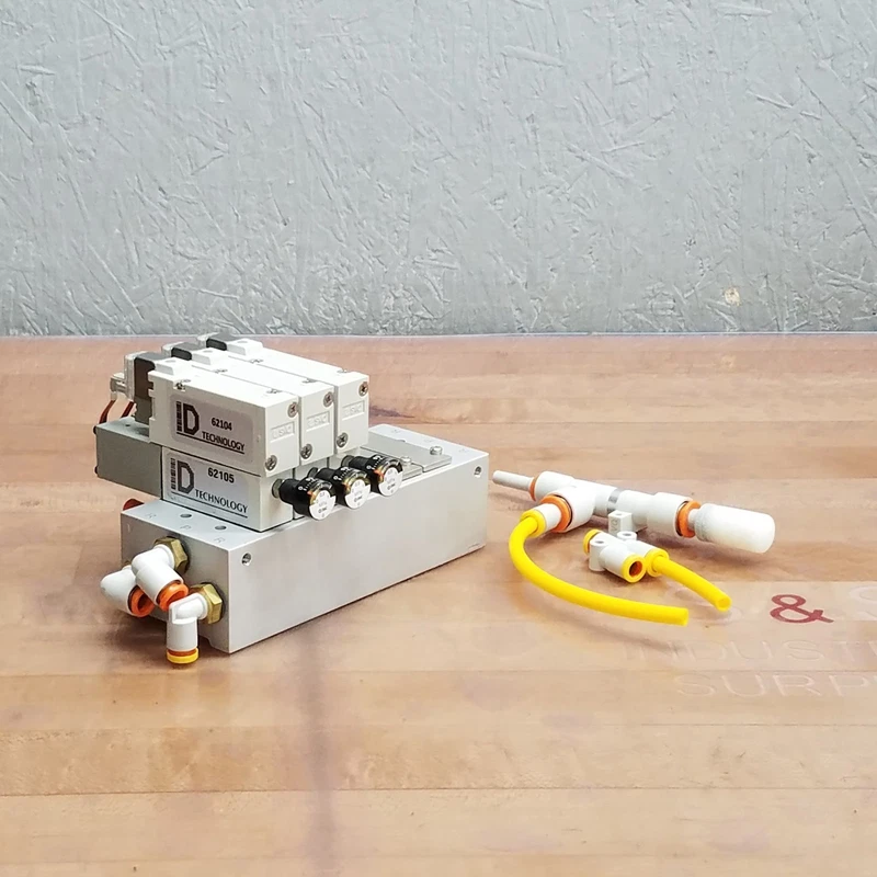 ID Technology ID100038 Pneumatic Valve Assembly, (3) 62104, (3) 62105 – USED