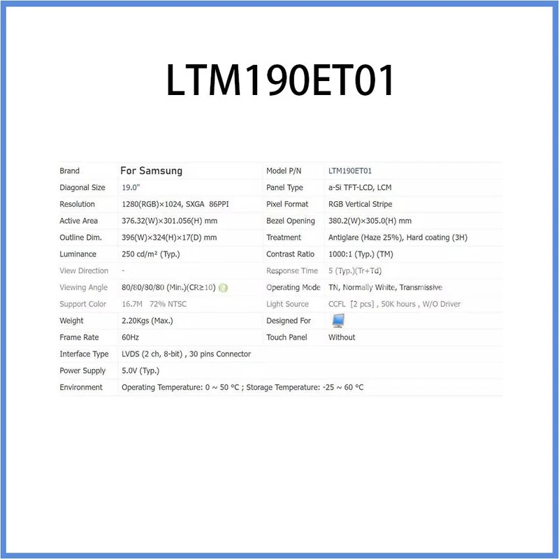 New LTM190ET01 LCD Screen Display Panel 19-Inch 1280*1024 for Samsung