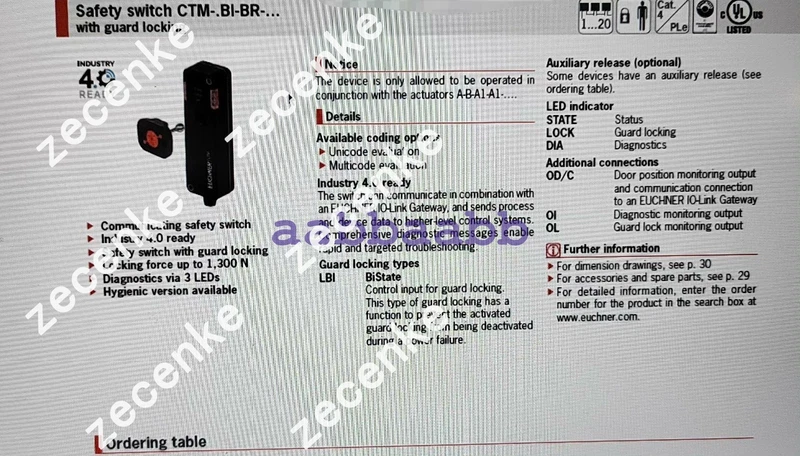 New Euchner Door Lock 165517, CTM-LBI-BR-M-AZ-SA-165517