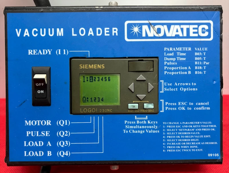 NOVATEC VL VACUUM LOADER VL-5 MACHINE MOUNT PELLET LOADER w MINI PLC CONTROLLER