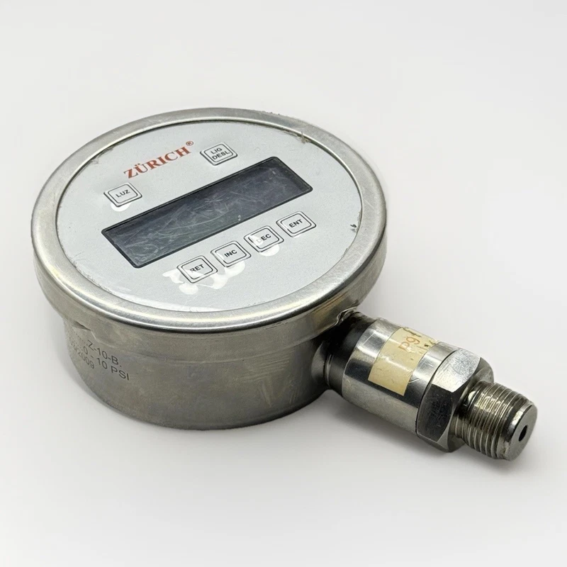 A high-precision digital pressure gauge designed for accurate and reliable pressure measurement in industrial and commercial applications, featuring a durable Brazilian-made construction.