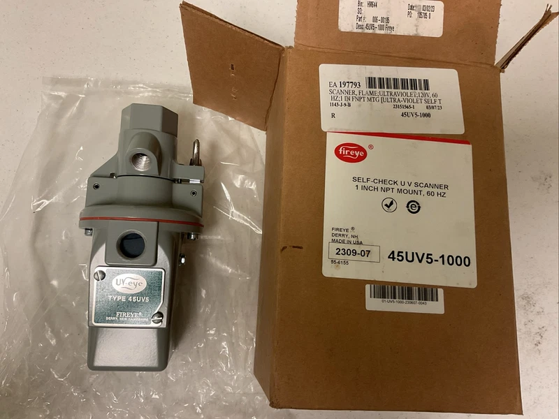 NEW, FIREYE 45UV5-1000 SHELF-CHECK UV SCANNER 60Hz, ULTRA-VIOLET, 1” NPT MOUNT